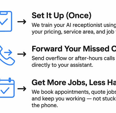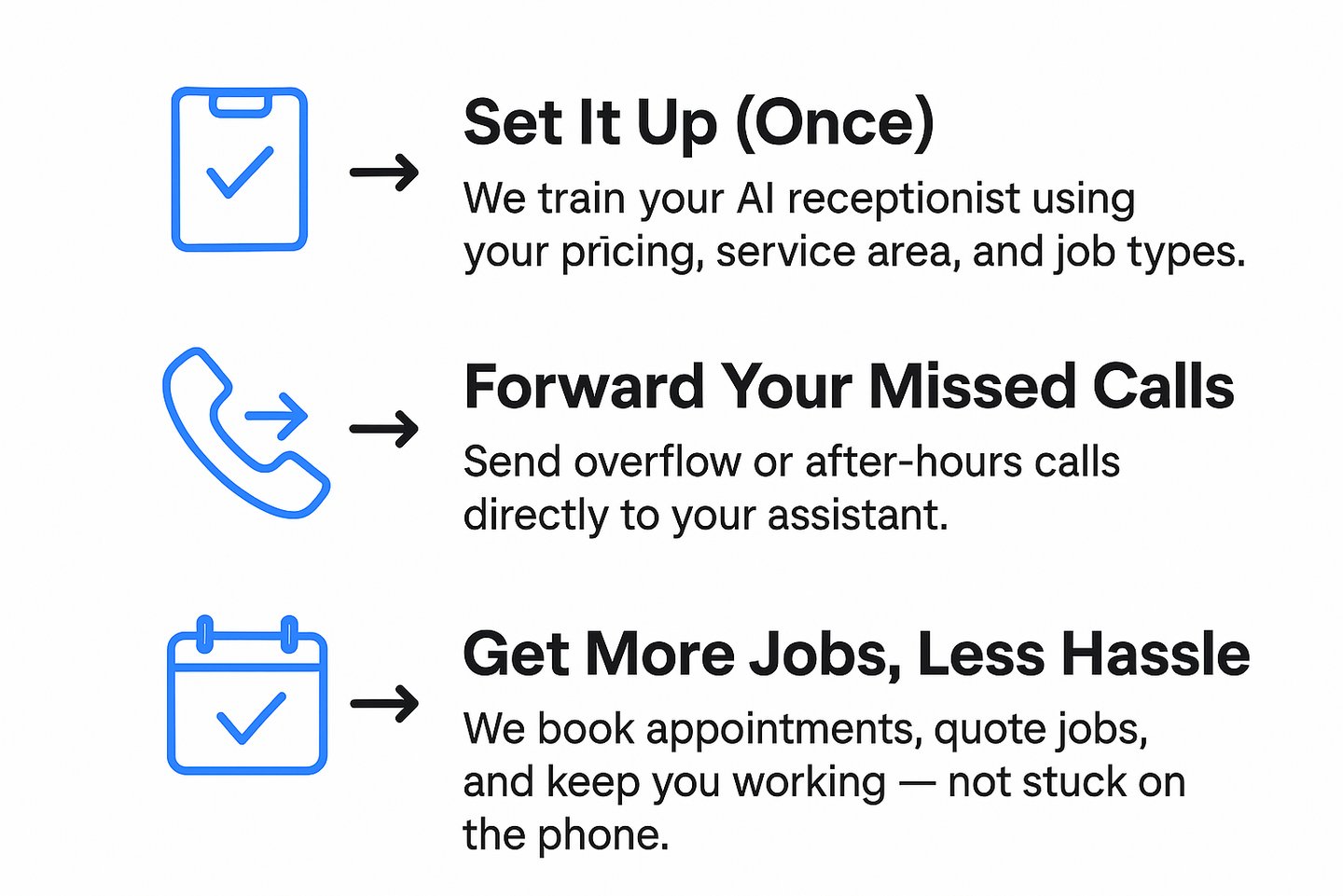 Your AI Voice Receptionist answers calls 24/7, books more jobs, and saves you time — so you can stay focused on the haul.